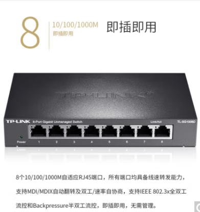 TP-LINK 8口千兆交換機 企業(yè)級交換器 監(jiān)控網(wǎng)絡網(wǎng)線分線器 分流器 金屬機身 TL-SG1008D